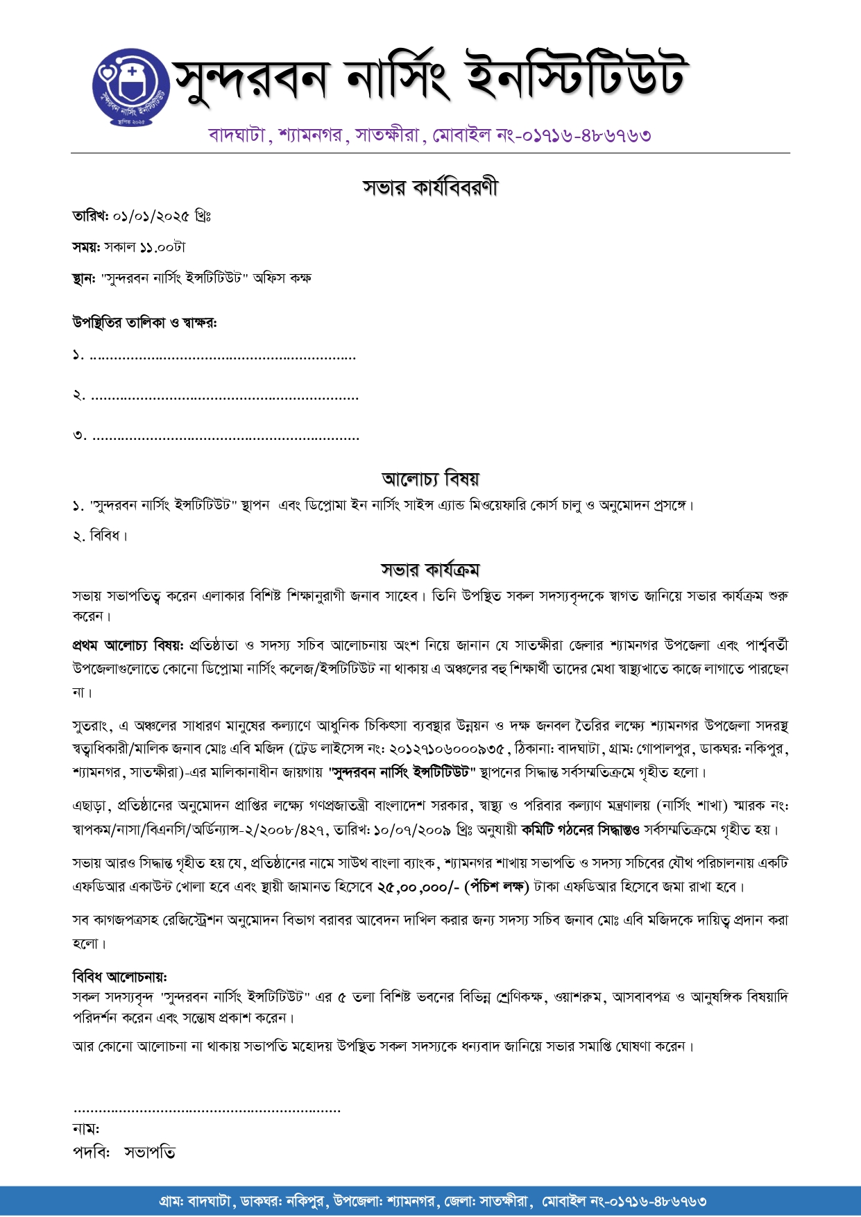 এলাকার স্বাস্থ্যসেবায় অবদান: শ্যামনগর ও আশপাশের এলাকায় স্বাস্থ্যসেবার মানোন্নয়ন ও জনসচেতনতা বৃদ্ধির মাধ্যমে একটি স্বাস্থ্যবান সমাজ গঠন।